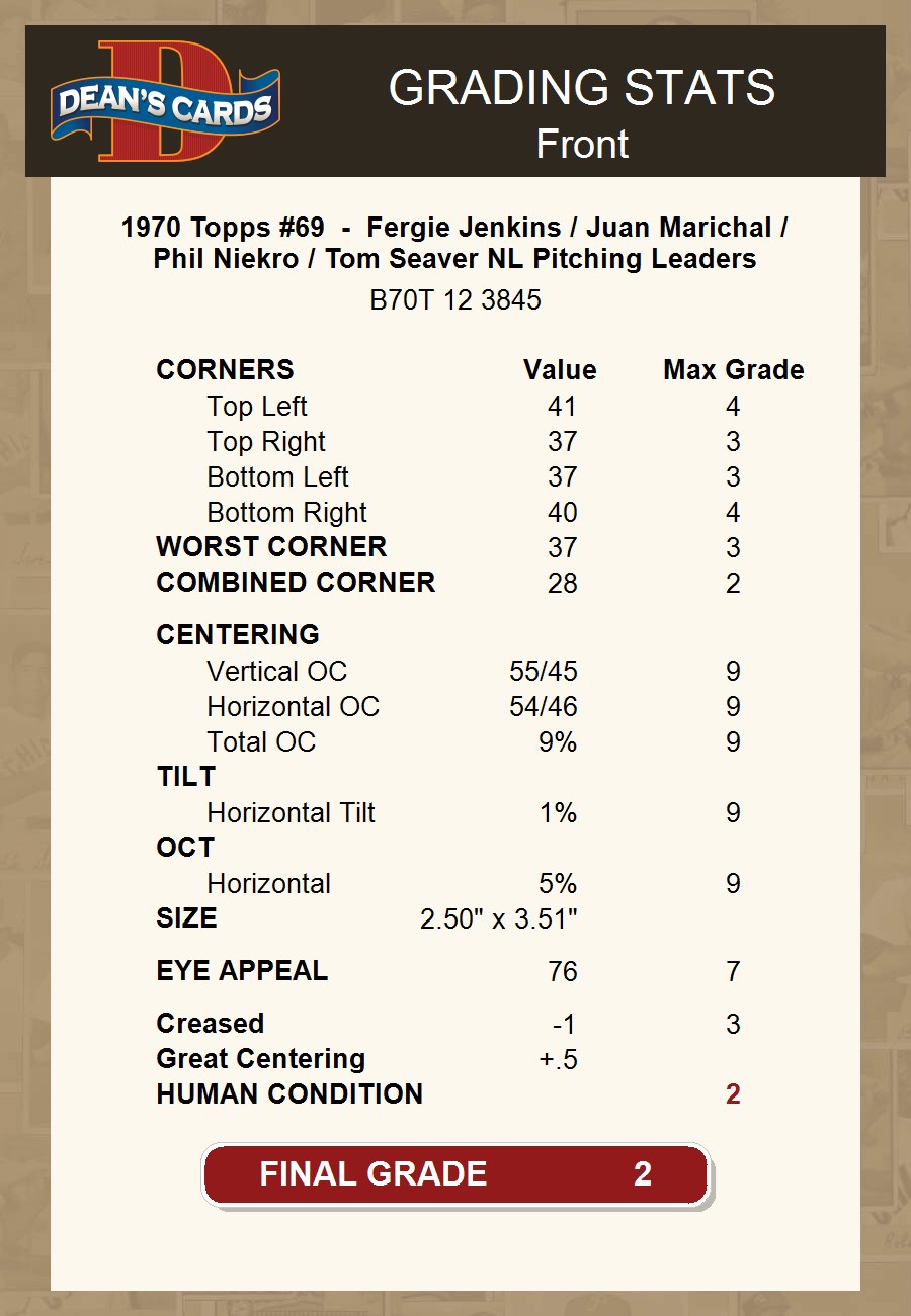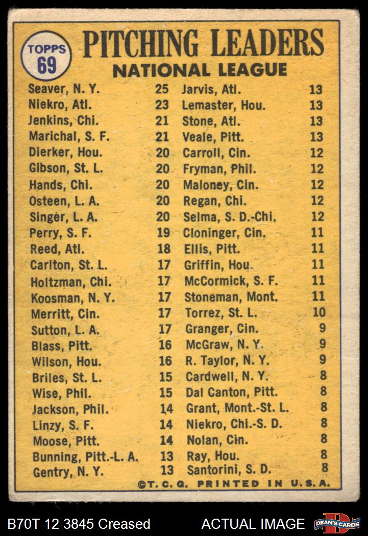 1970 Topps #69 - Fergie Jenkins / Juan Marichal / Phil Niekro / Tom Seaver NL Pitching Leaders 2 - GOOD