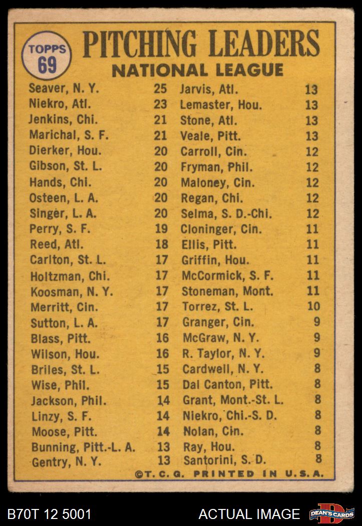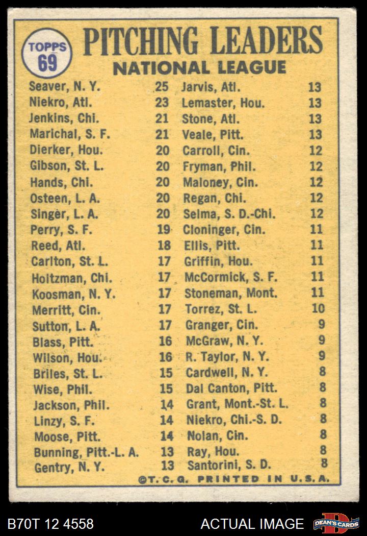 1970 Topps #69 - Fergie Jenkins / Juan Marichal / Phil Niekro / Tom Seaver NL Pitching Leaders 4 - VG/EX