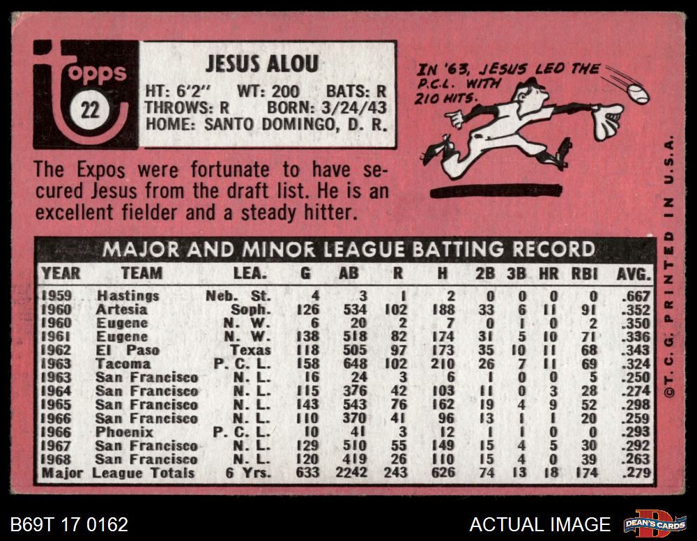 1969 Topps #22 Jesus Alou 1.5 - FAIR