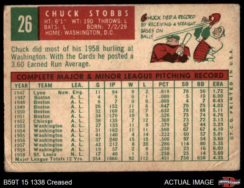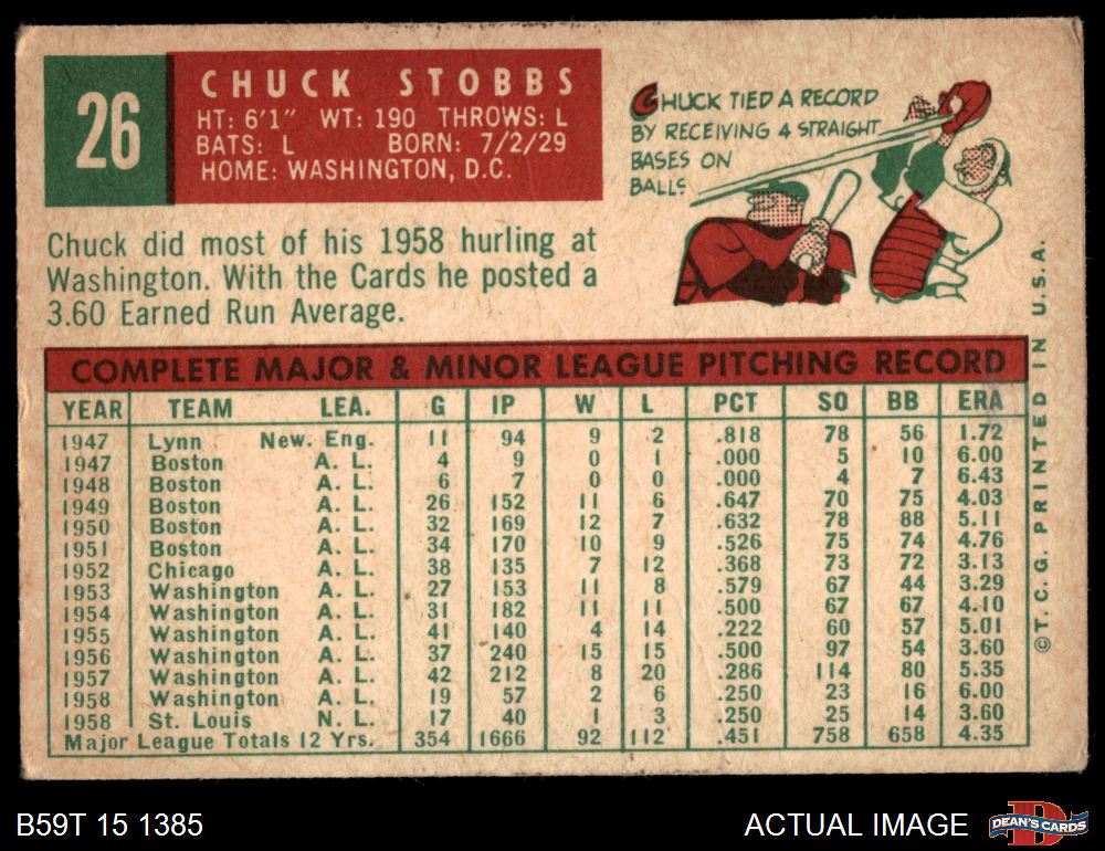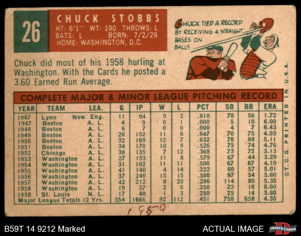 1959 Topps #26 Chuck Stobbs