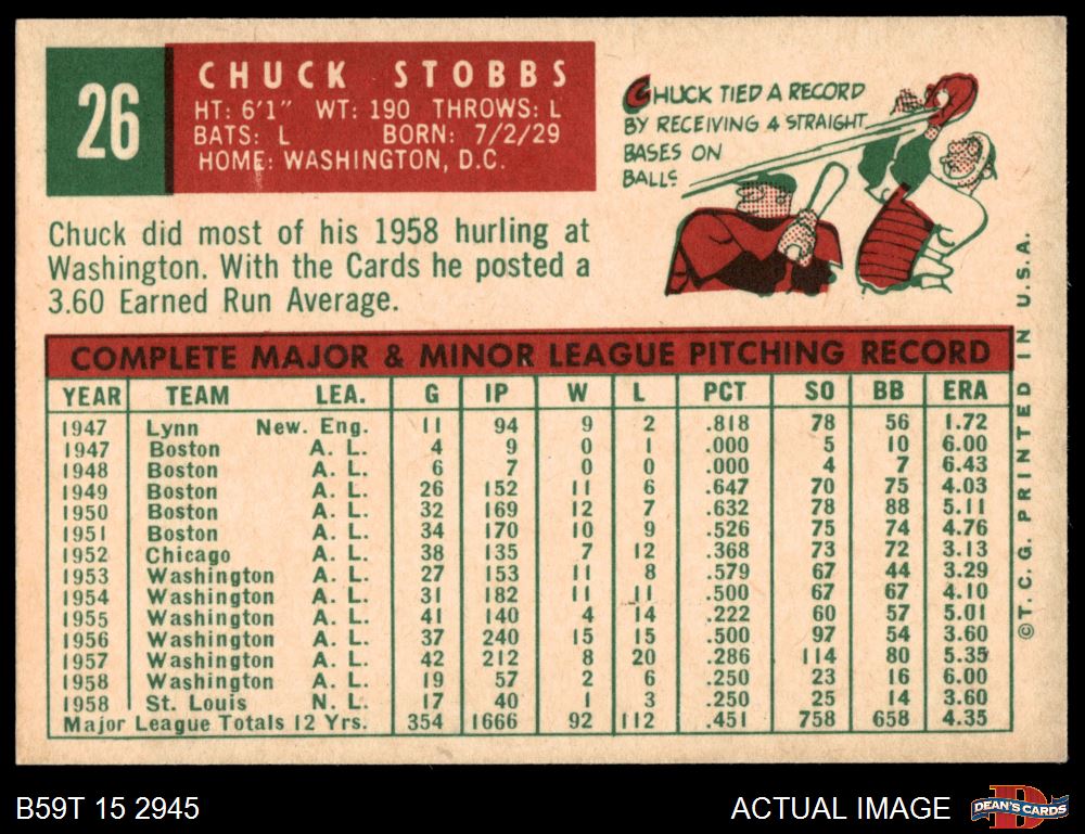 1959 Topps #26 Chuck Stobbs 5 - EX
