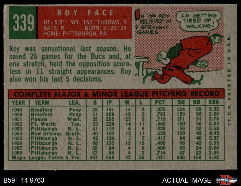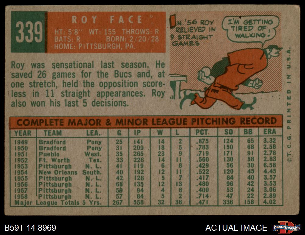 1959 Topps #339 Roy Face 3 - VG