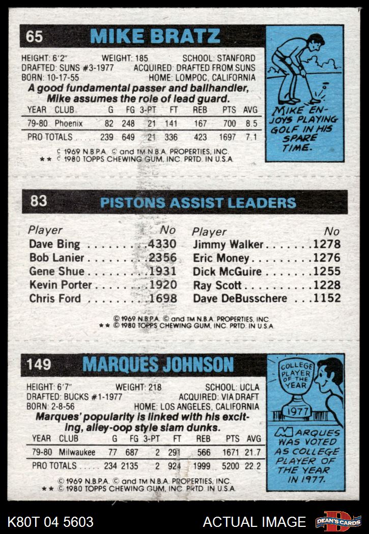 1980 Topps - Marques Johnson / Eric Money / Mike Bratz 149 / 83 / 65 6 - EX/MT