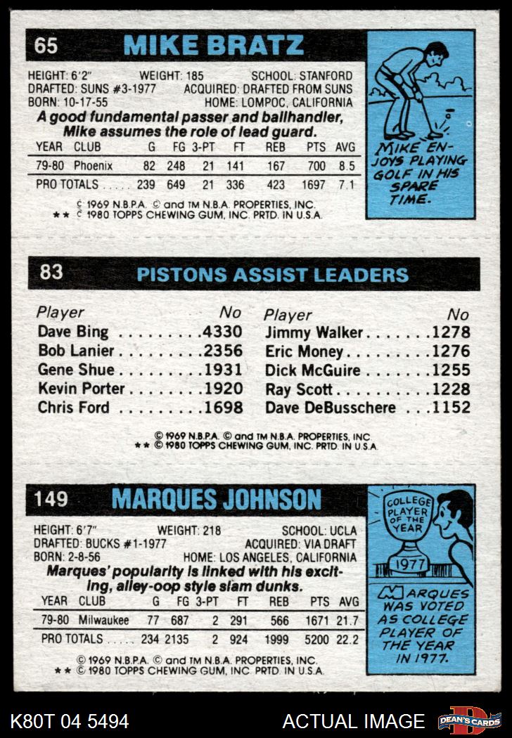 1980 Topps - Marques Johnson / Eric Money / Mike Bratz 149 / 83 / 65 8 - NM/MT