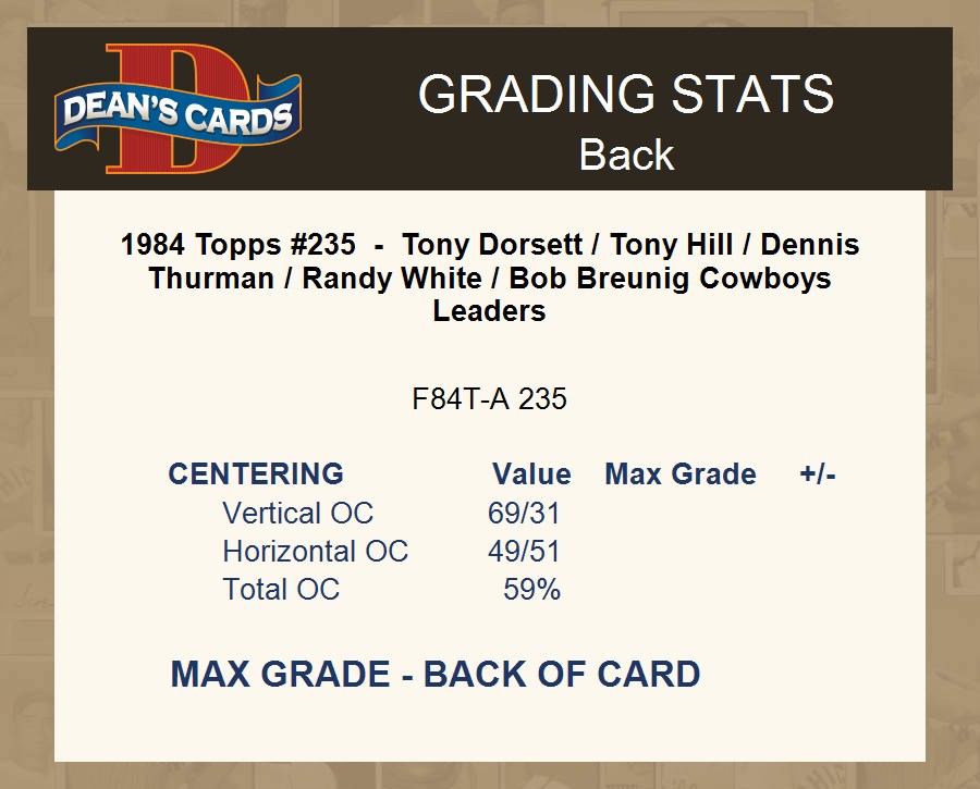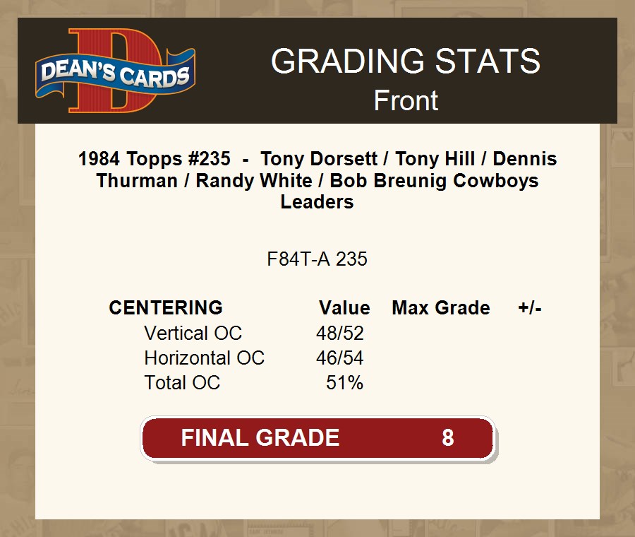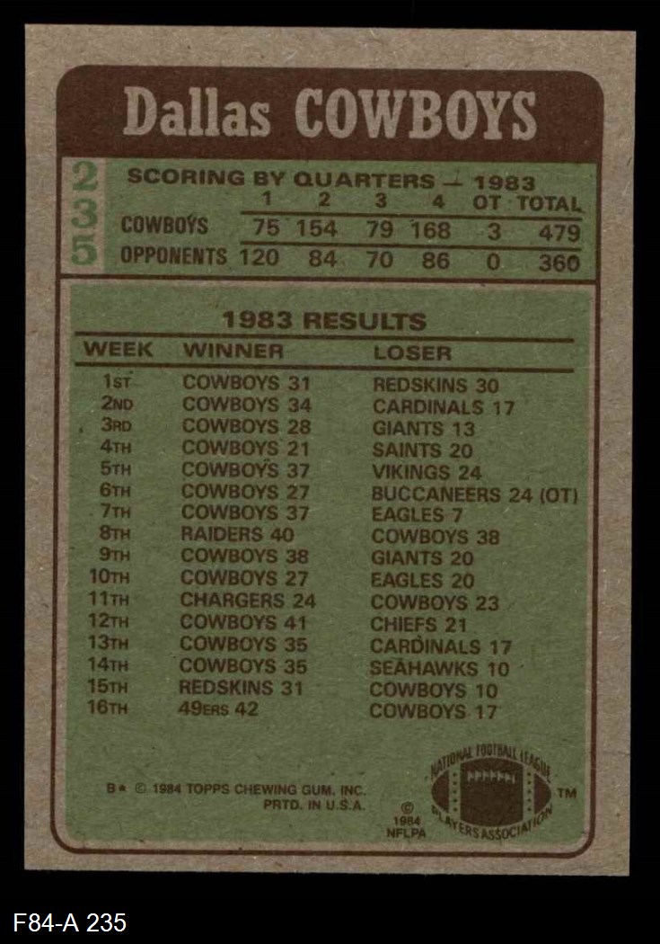 1984 Topps #235 - Tony Dorsett / Tony Hill / Dennis Thurman / Randy White / Bob Breunig Cowboys Leaders 8 - NM/MT