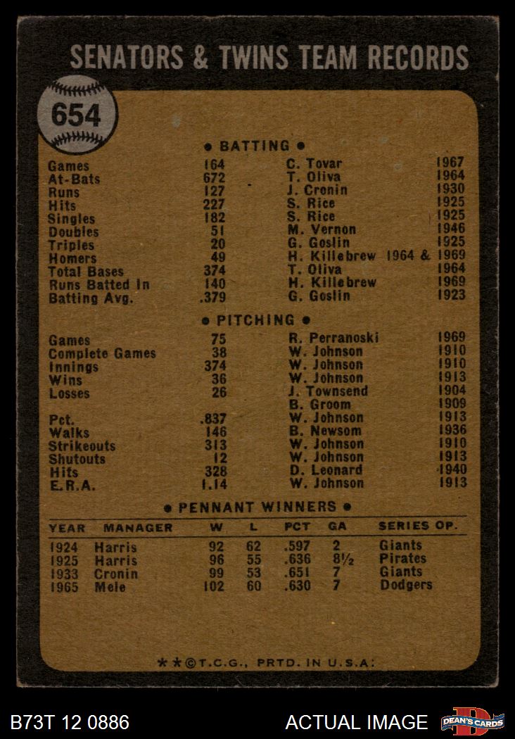 1973 Topps #654 Twins Team 1.5 - FAIR