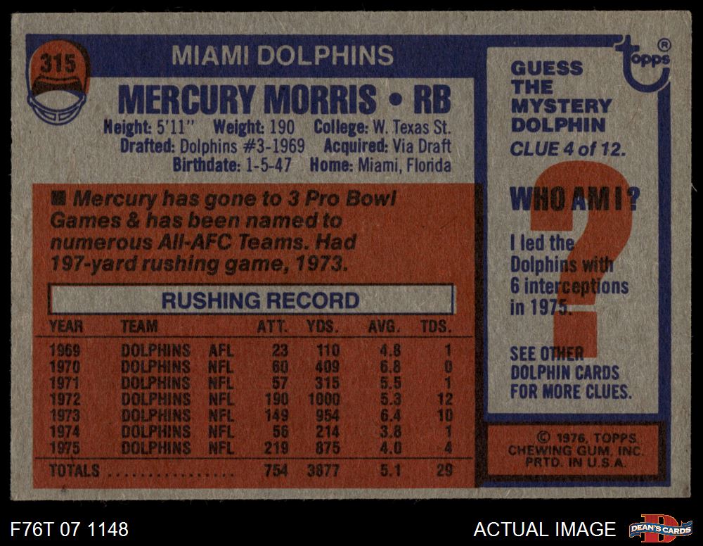 1976 Topps #315 Mercury Morris 5.5 - EX+