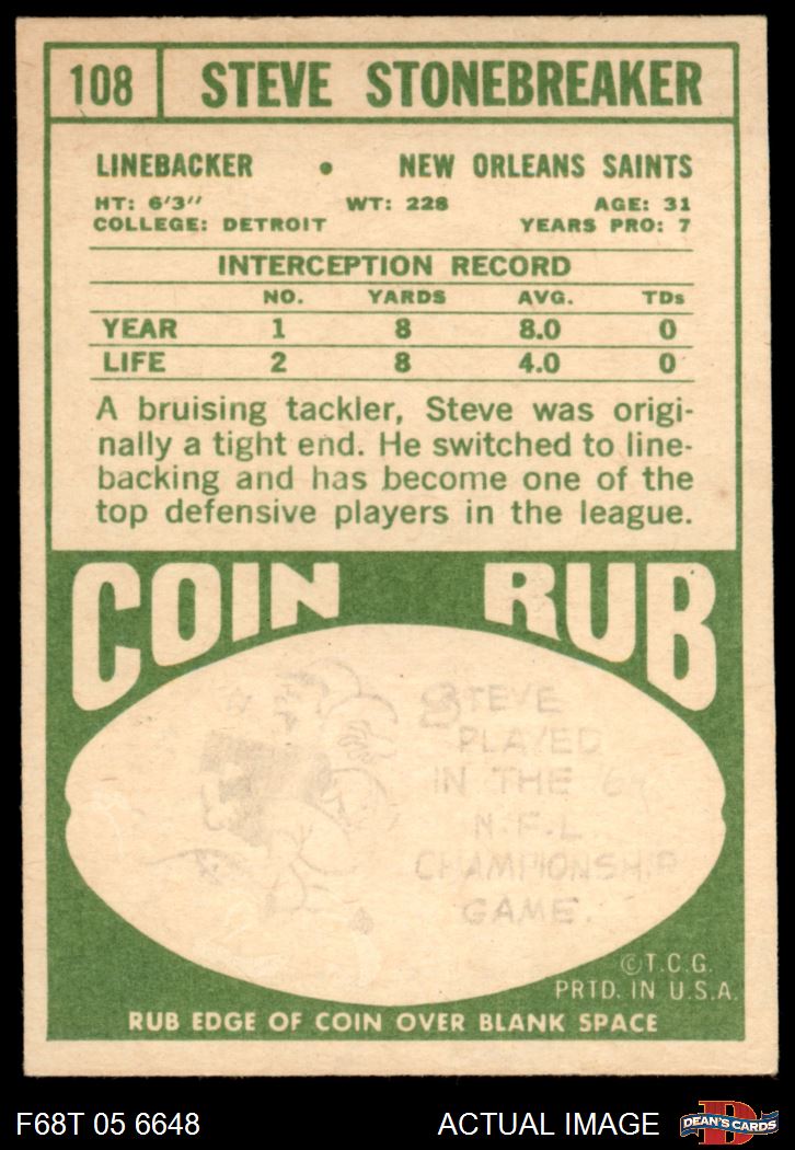 1968 Topps #108 Steve Stonebreaker 4 - VG/EX