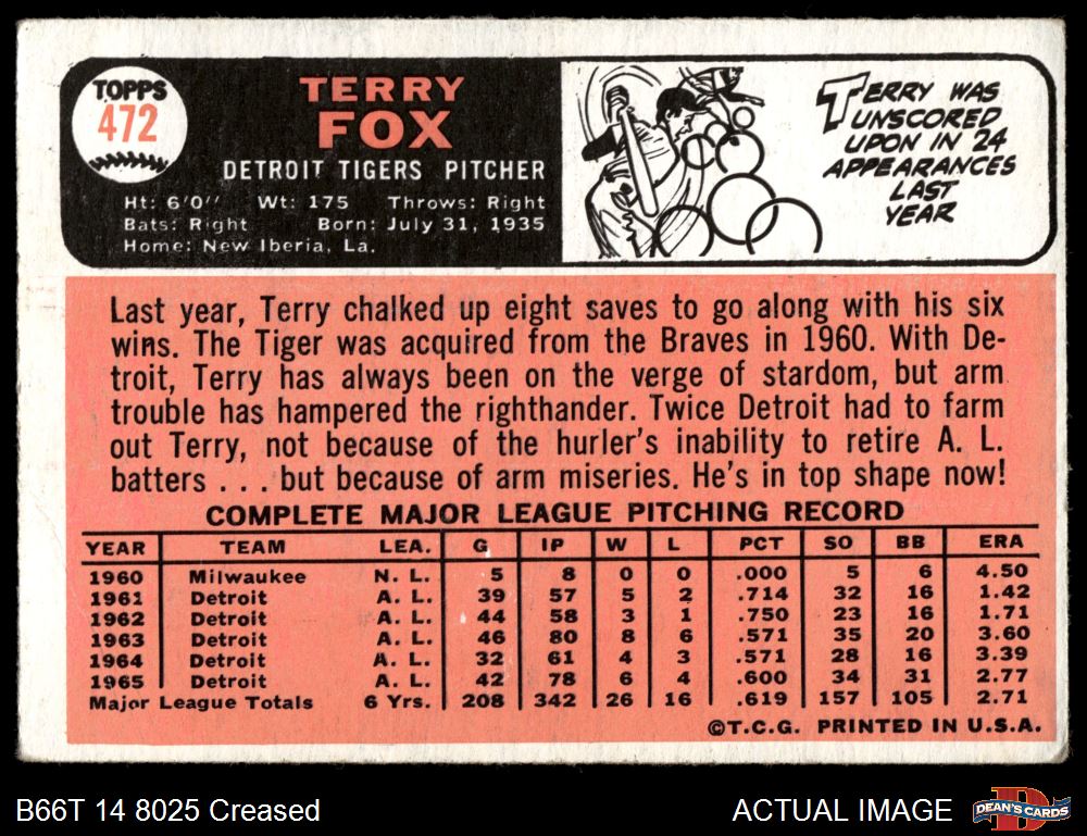 1966 Topps #472 Terry Fox 2 - GOOD