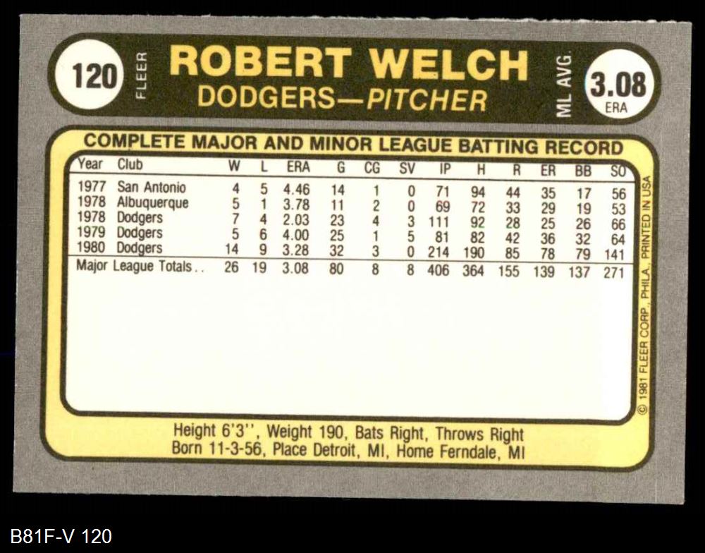 1981 Fleer #120 Rob Bob Welch 8 - NM/MT