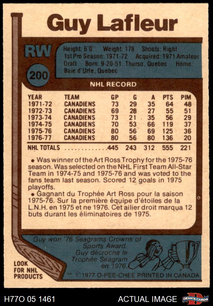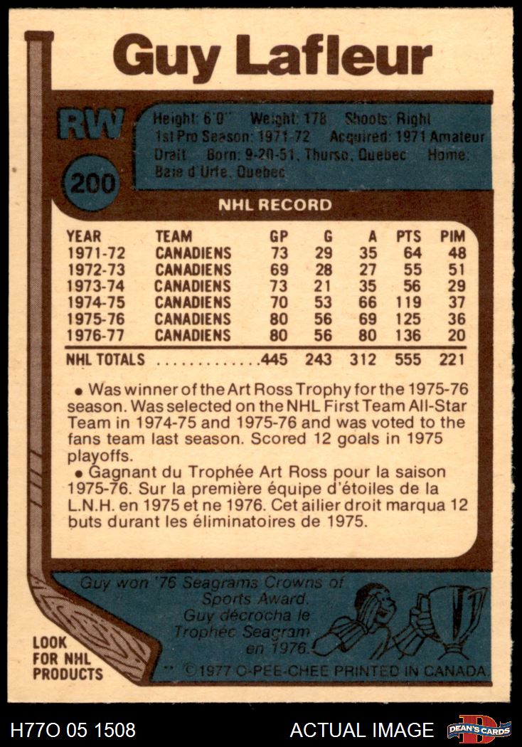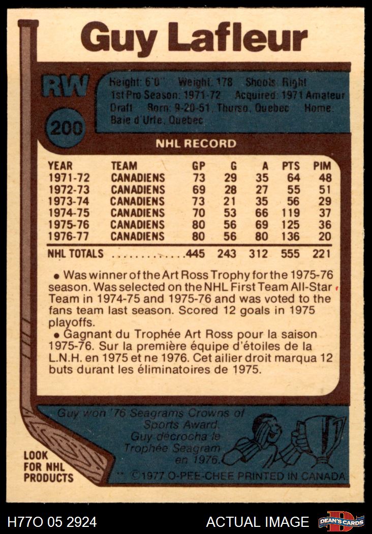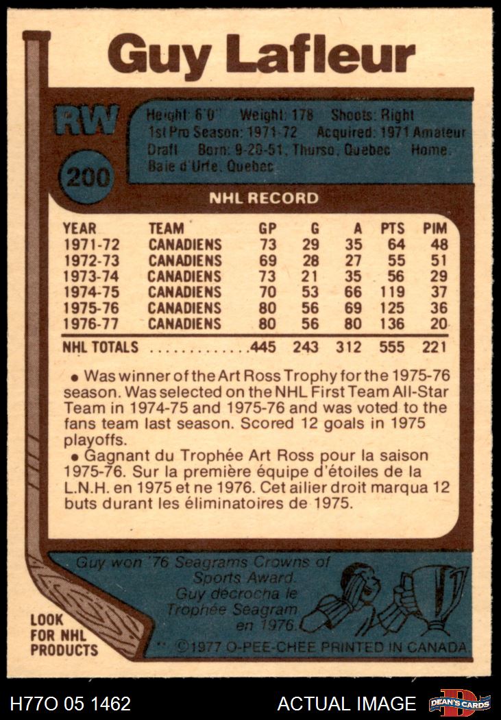 1977 O-Pee-Chee #200 Guy Lafleur 7 - NM