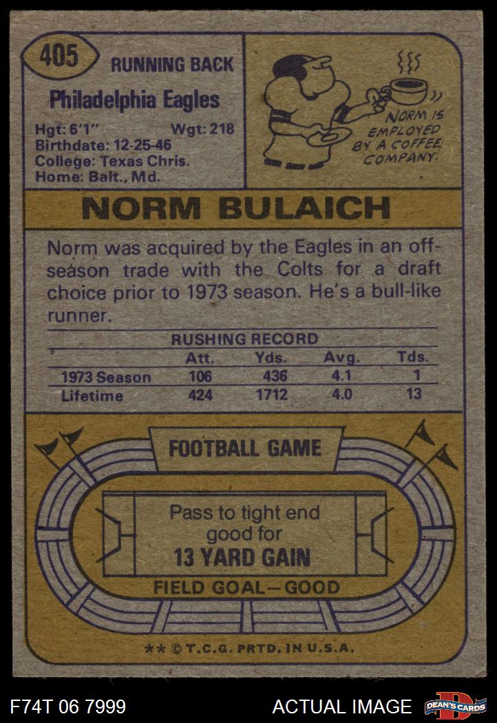 1974 Topps #405 Norm Bulaich 6.5 - EX/MT+