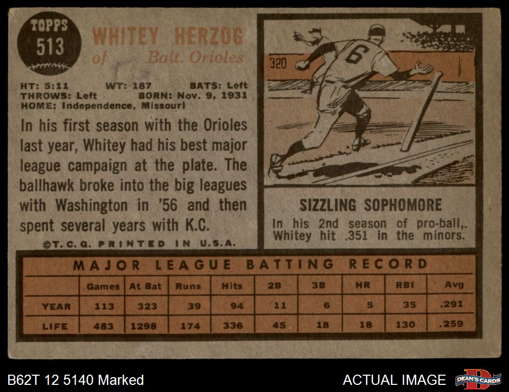 1962 Topps #513 Whitey Herzog 1.5 - FAIR