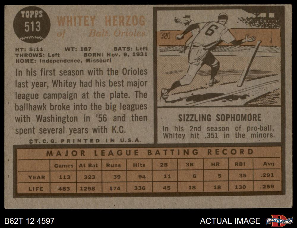 1962 Topps #513 Whitey Herzog 3.5 - VG+