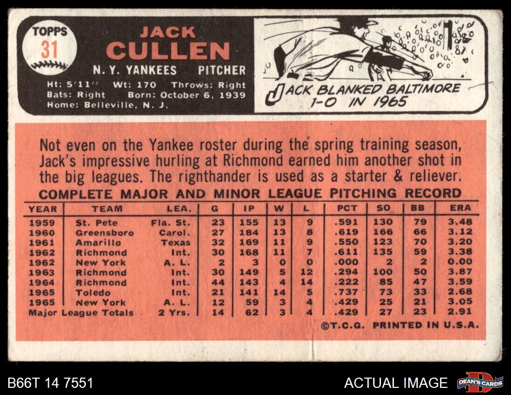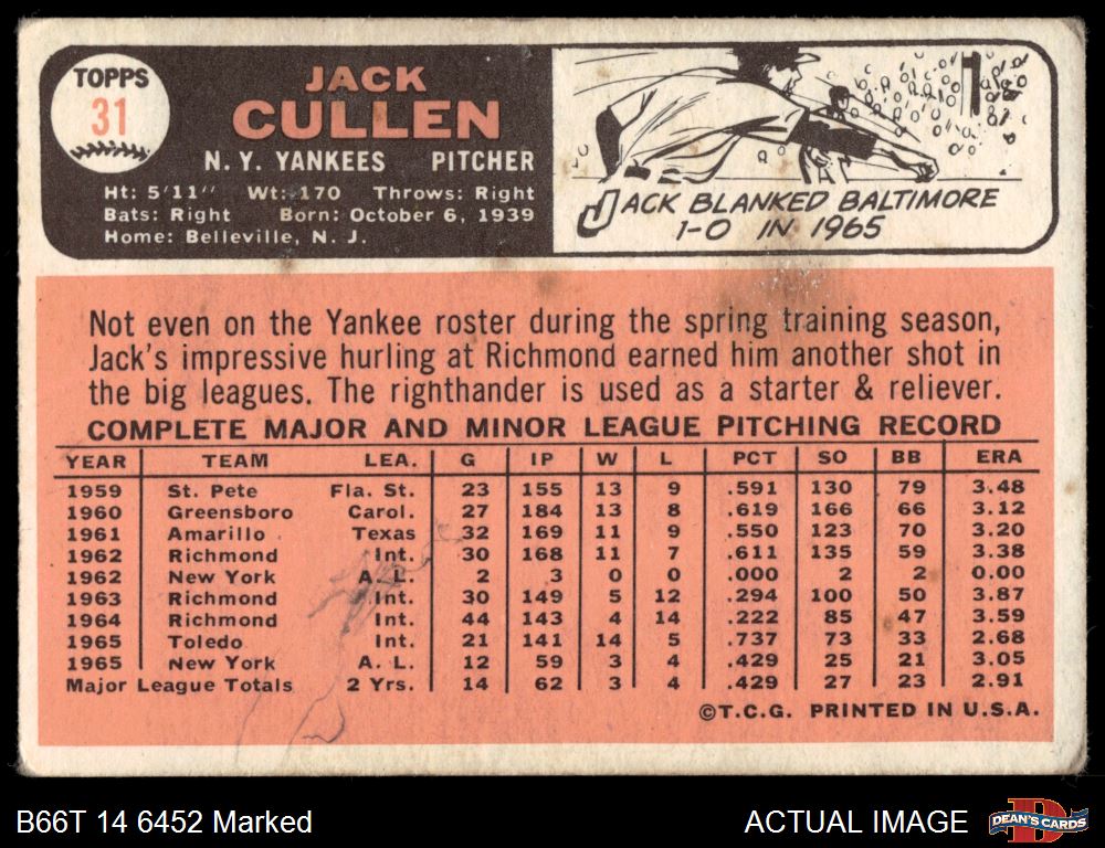 1966 Topps #31 Jack Cullen 1.5 - FAIR