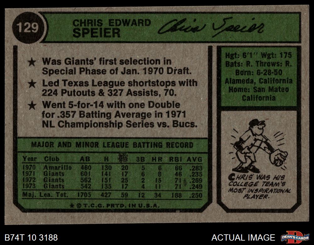 1974 Topps #129 Chris Speier 5 - EX