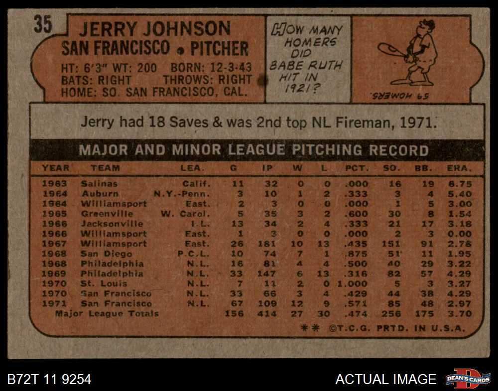 1972 Topps #35 Jerry Johnson 3 - VG
