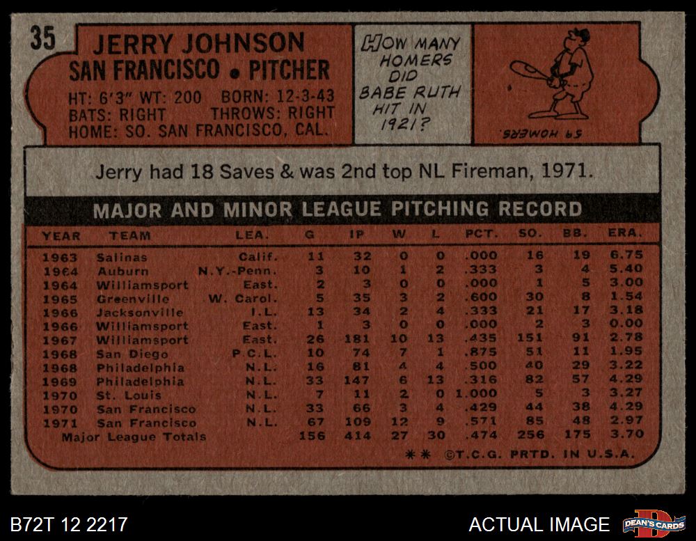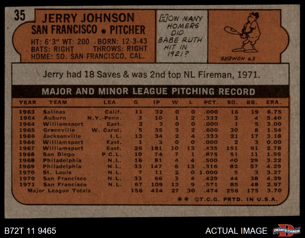 1972 Topps #35 Jerry Johnson 5 - EX