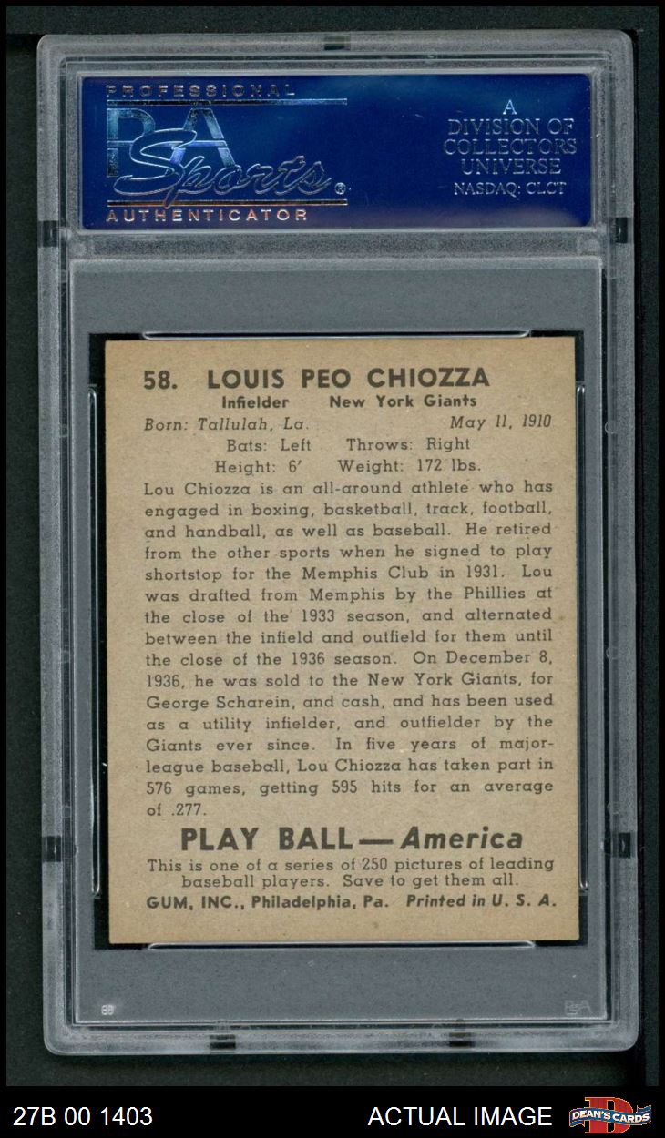 1939 Play Ball #58 Louis Chiozza PSA 6 - EX/MT