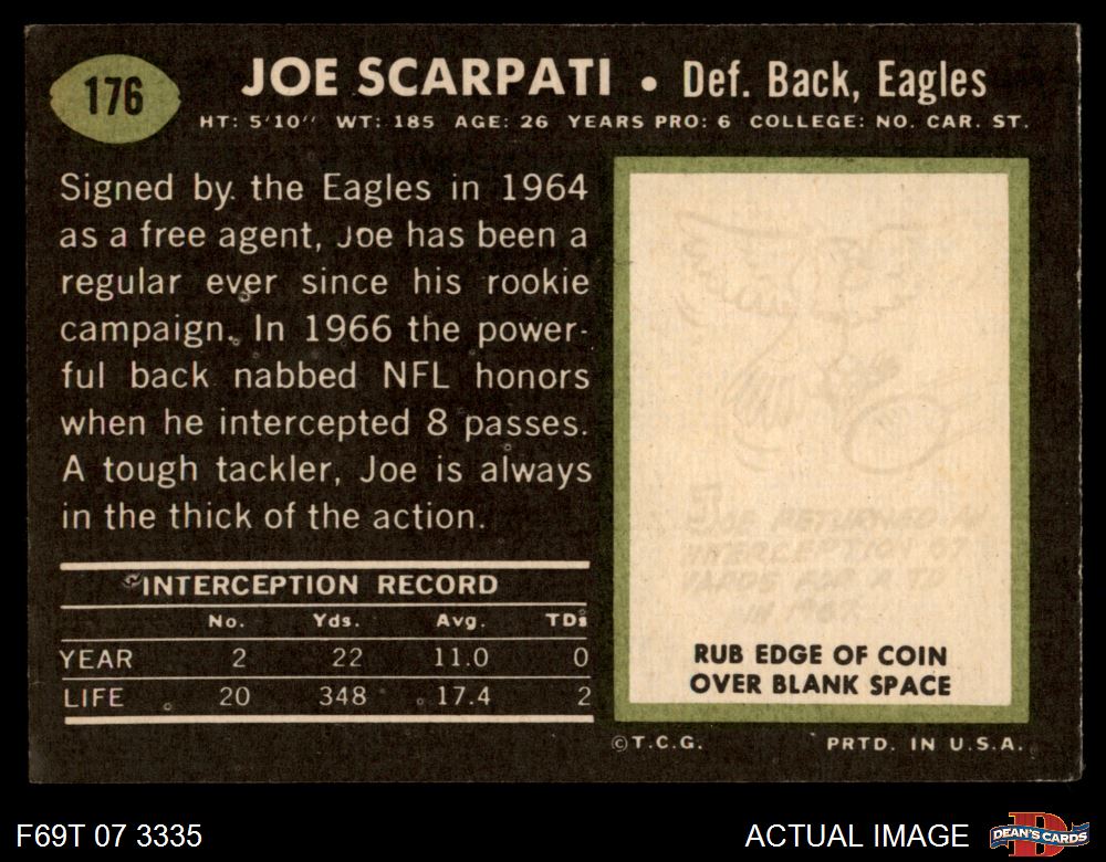 1969 Topps #176 Joe Scarpati 2 - GOOD