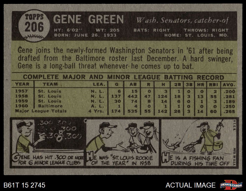 1961 Topps #206 Gene Green 6 - EX/MT