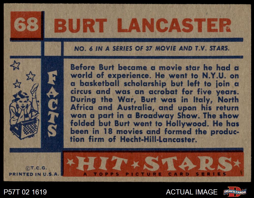 1957 Topps Hit Stars #68 Burt Lancaster 6 - EX/MT