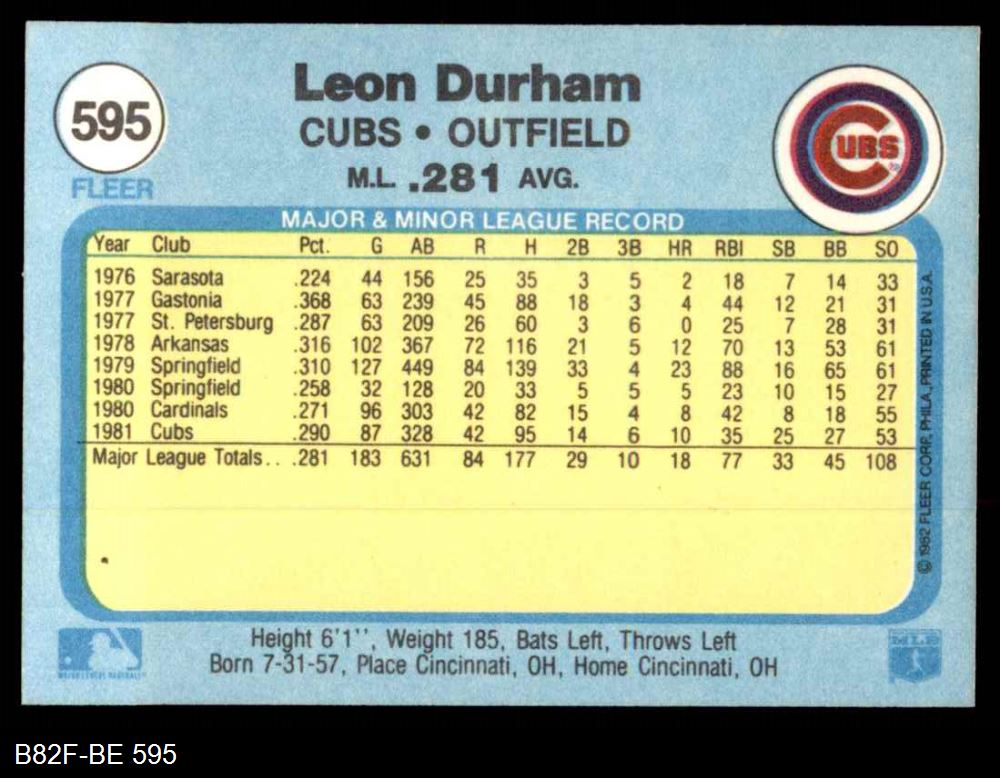 1982 Fleer #595 Leon Durham 8 - NM/MT
