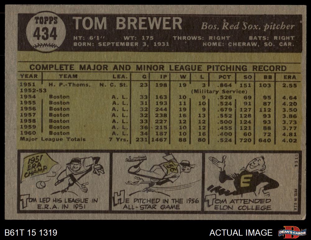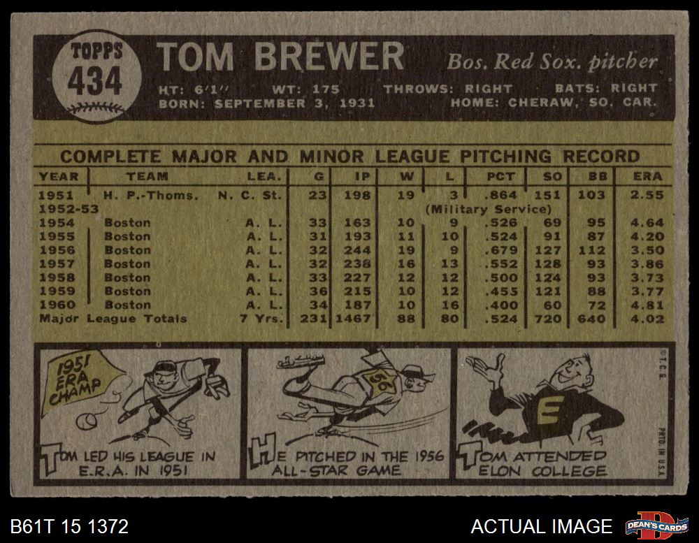1961 Topps Baseball Cards (10,608 available)1961 Topps Red Sox (721 available)