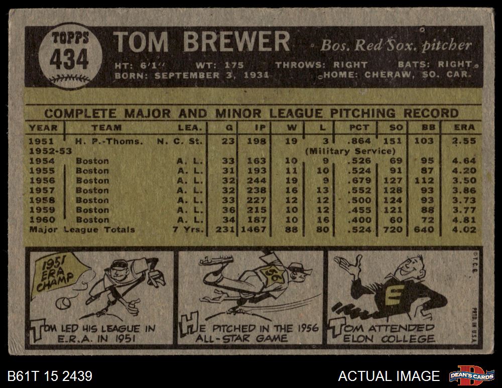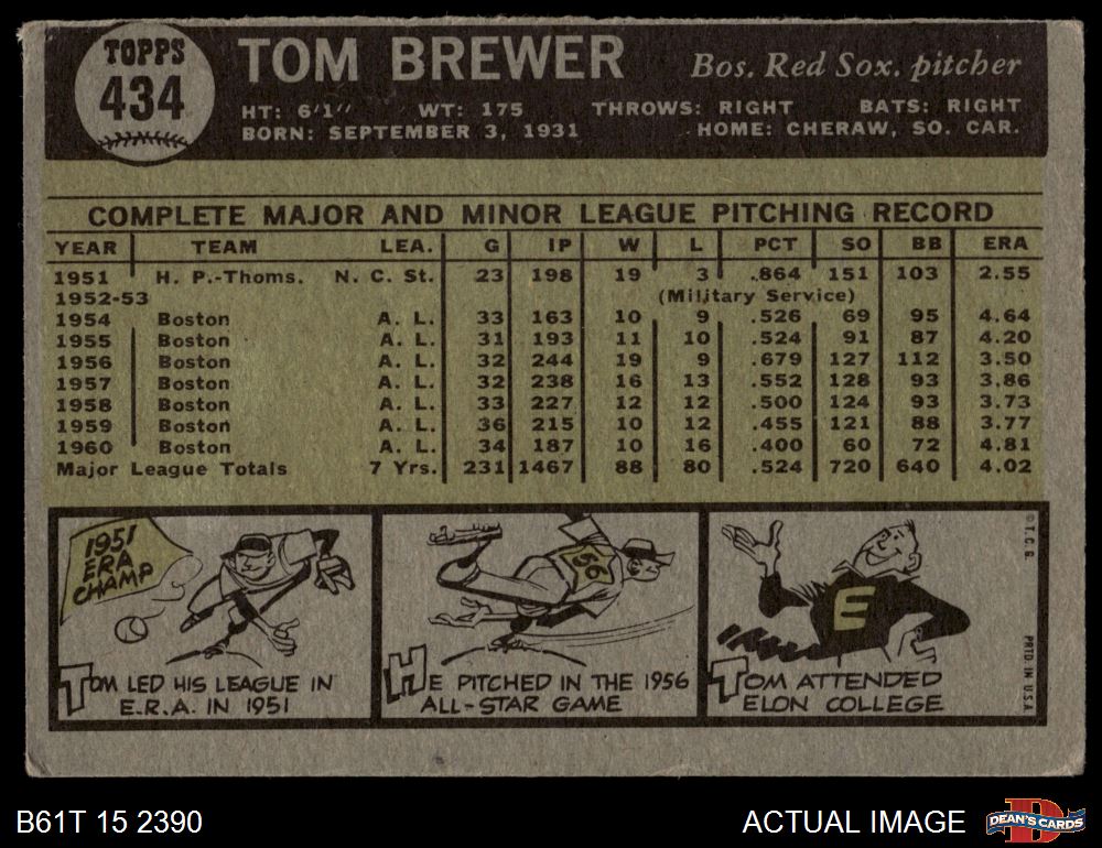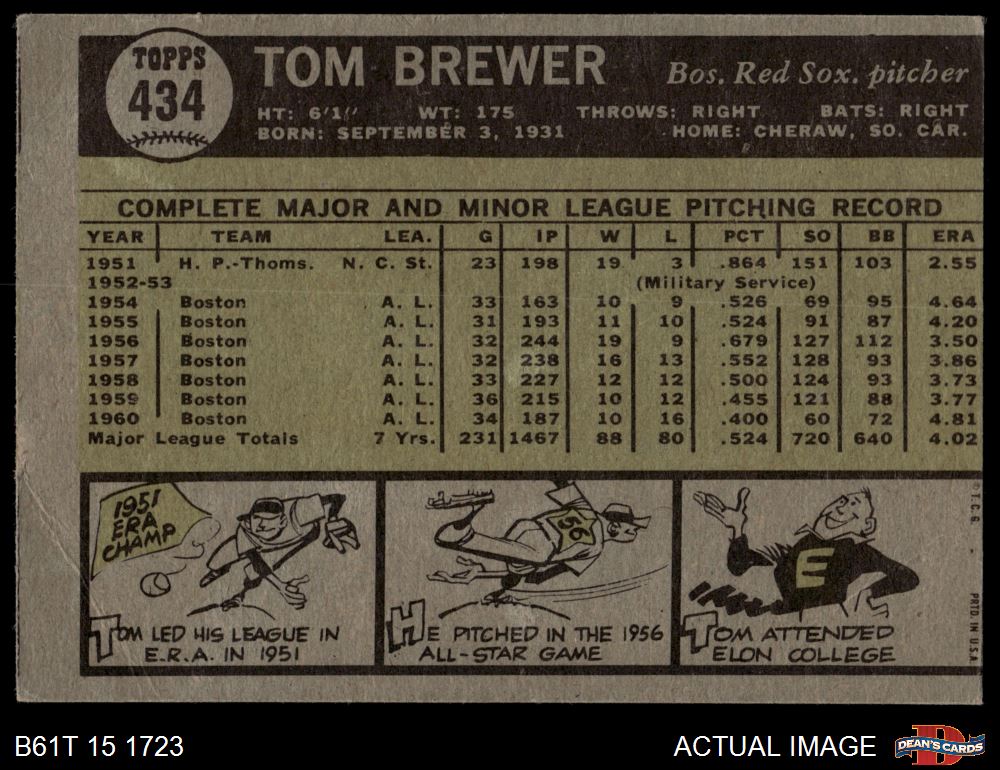 1961 Topps #434 Tom Brewer 2 - GOOD