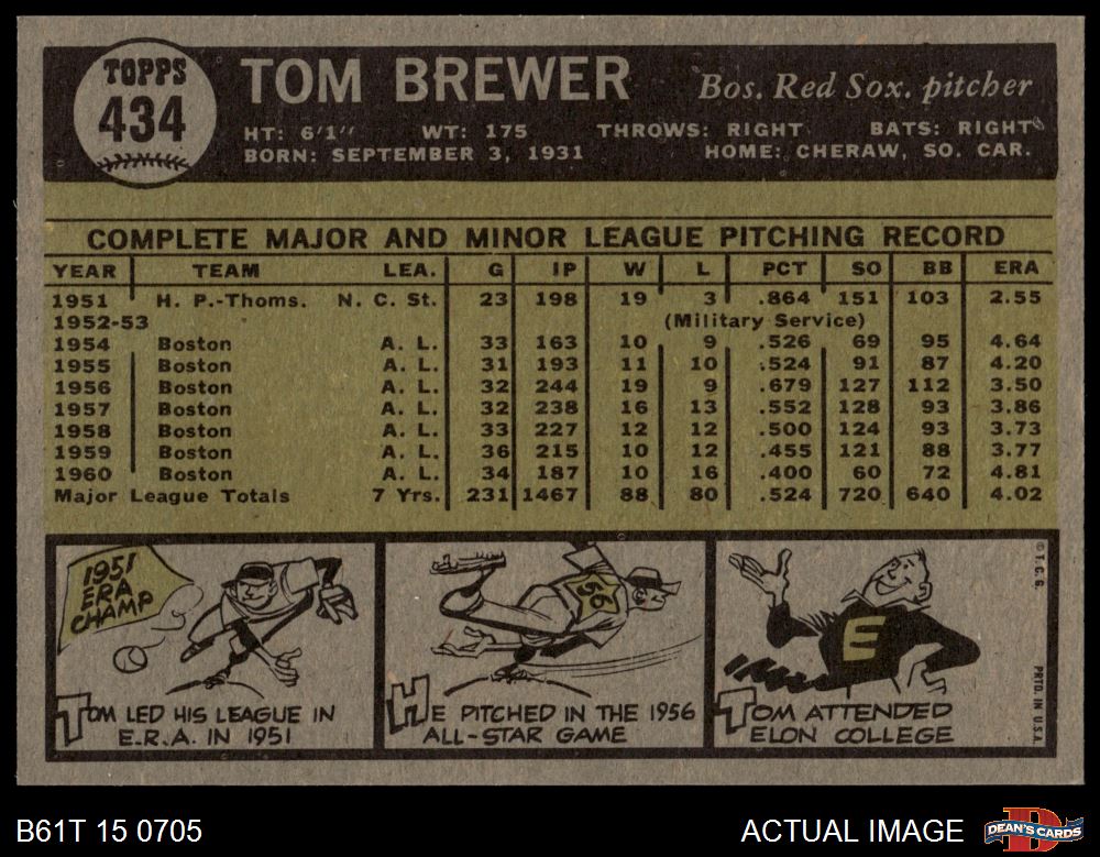 1961 Topps #434 Tom Brewer 6.5 - EX/MT+