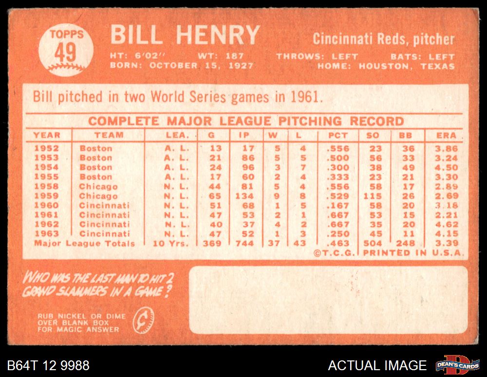 1964 Topps #49 Bill Henry 1.5 - FAIR