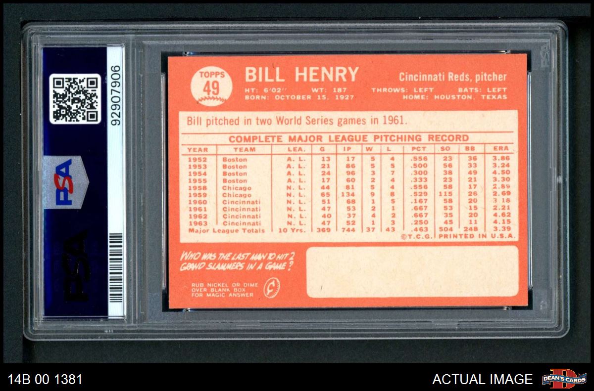1964 Topps #49 Bill Henry PSA 8 - NM/MT
