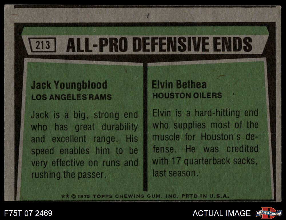 1975 Topps #213 - Jack Youngblood / Elvin Bethea All-Pro Defensive Ends 2 - GOOD