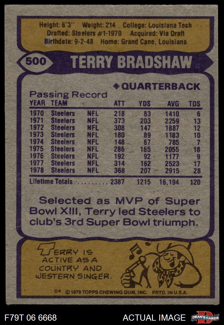 1979 Topps #500 Terry Bradshaw 3 - VG