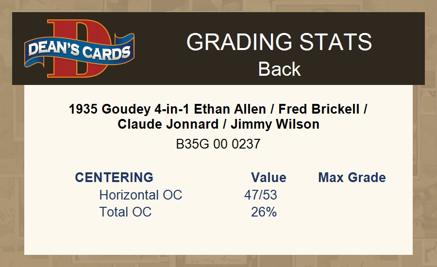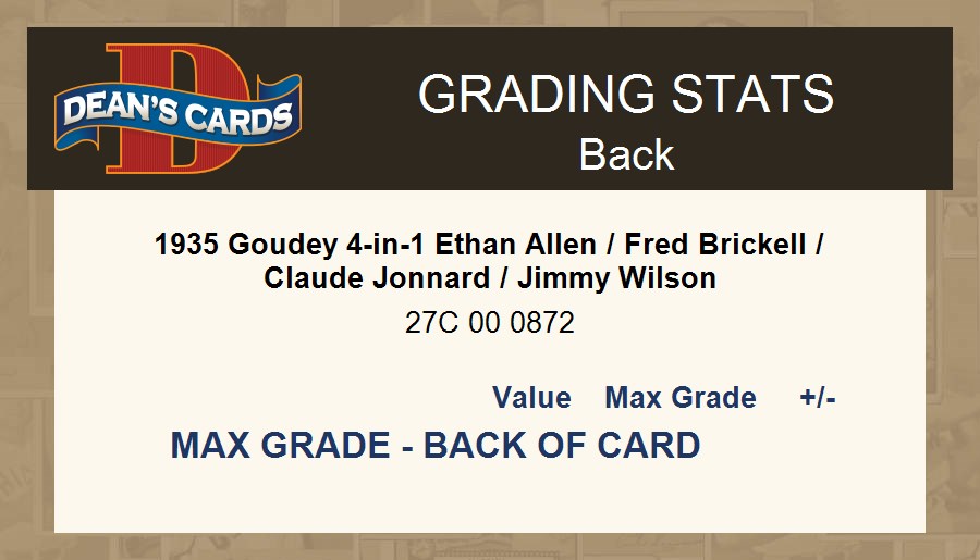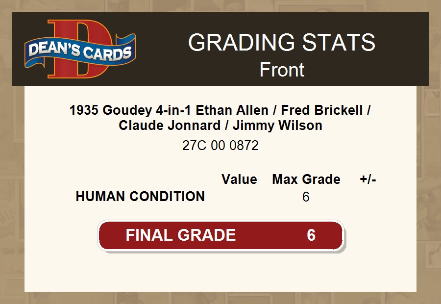 1935 Goudey 4-in-1 Ethan Allen / Fred Brickell / Claude Jonnard / Jimmy Wilson