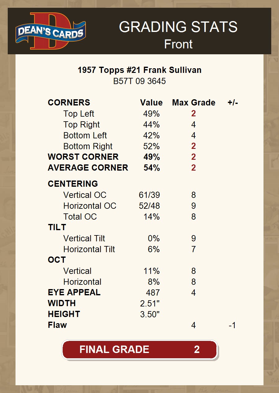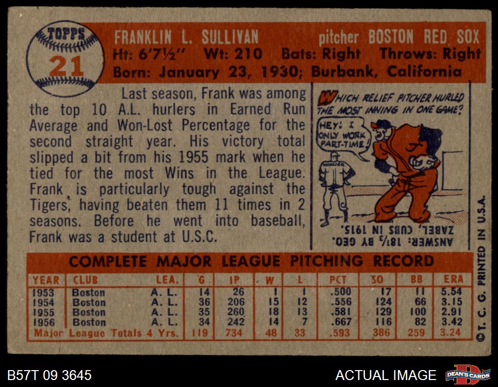 1957 Topps #21 Frank Sullivan 2 - GOOD