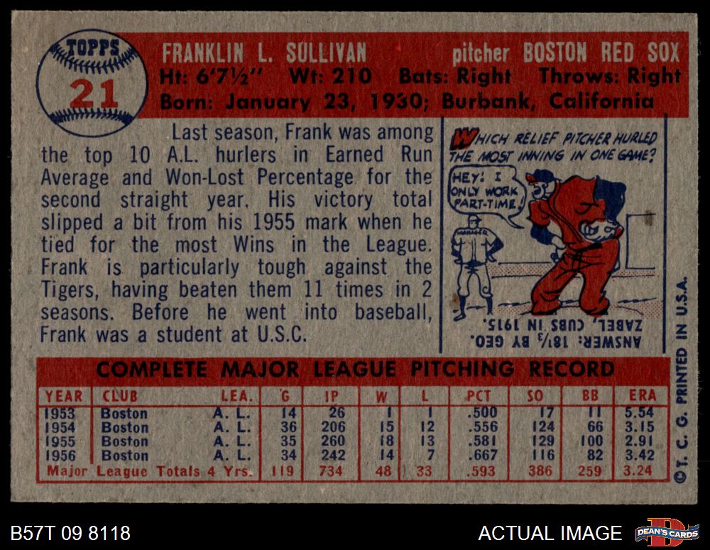 1957 Topps #21 Frank Sullivan 4.5 - VG/EX+