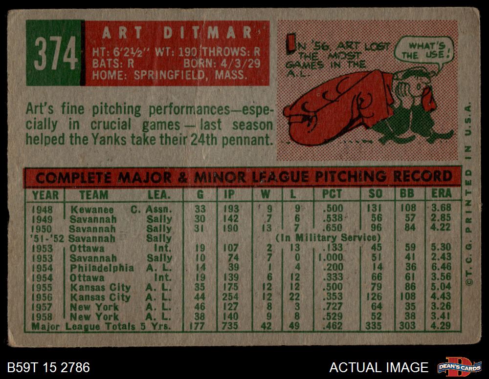 1959 Topps #374 Art Ditmar 1 - POOR
