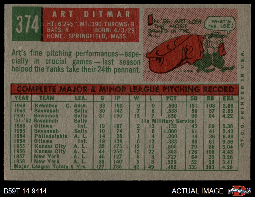 1959 Topps #374 Art Ditmar 4 - VG/EX