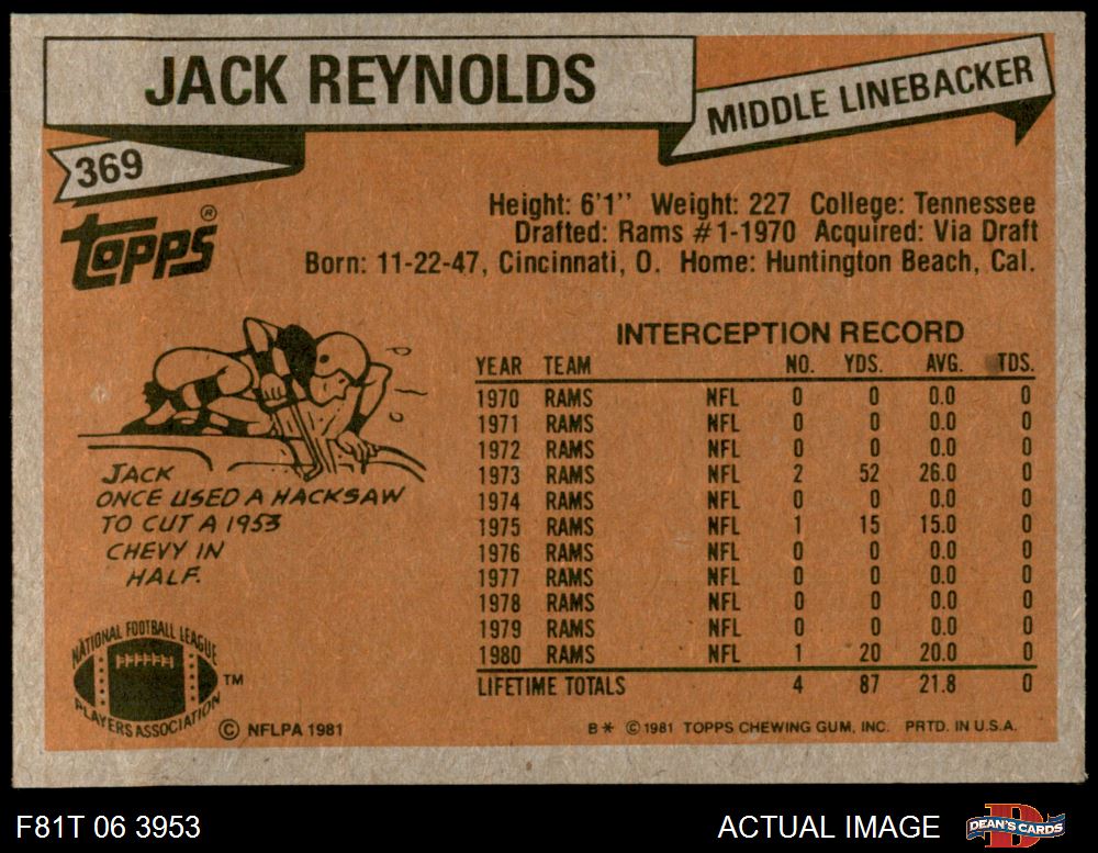 1981 Topps #369 Jack Reynolds 6 - EX/MT