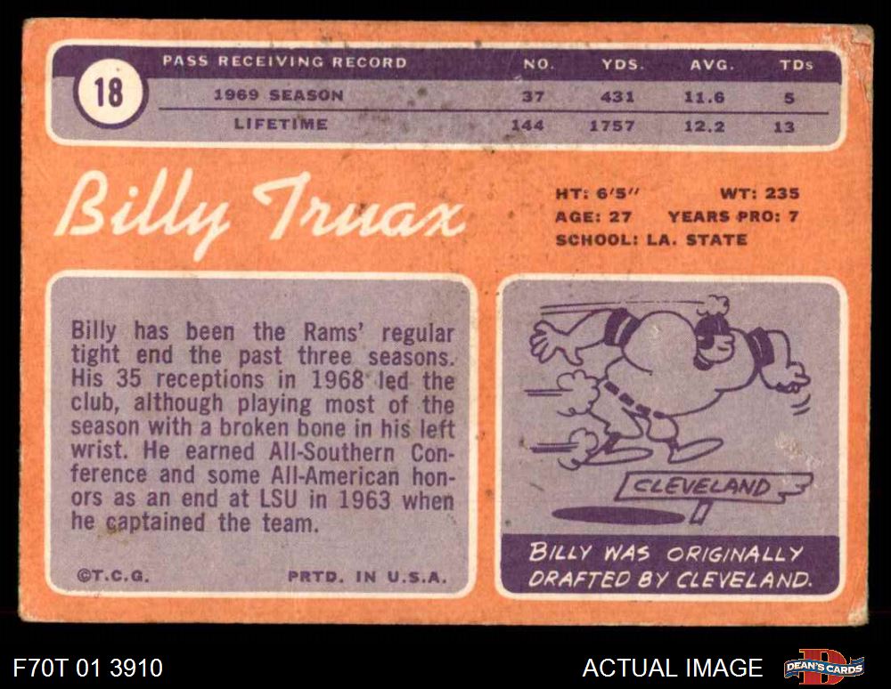 1970 Topps #18 Billy Truax 1 - POOR