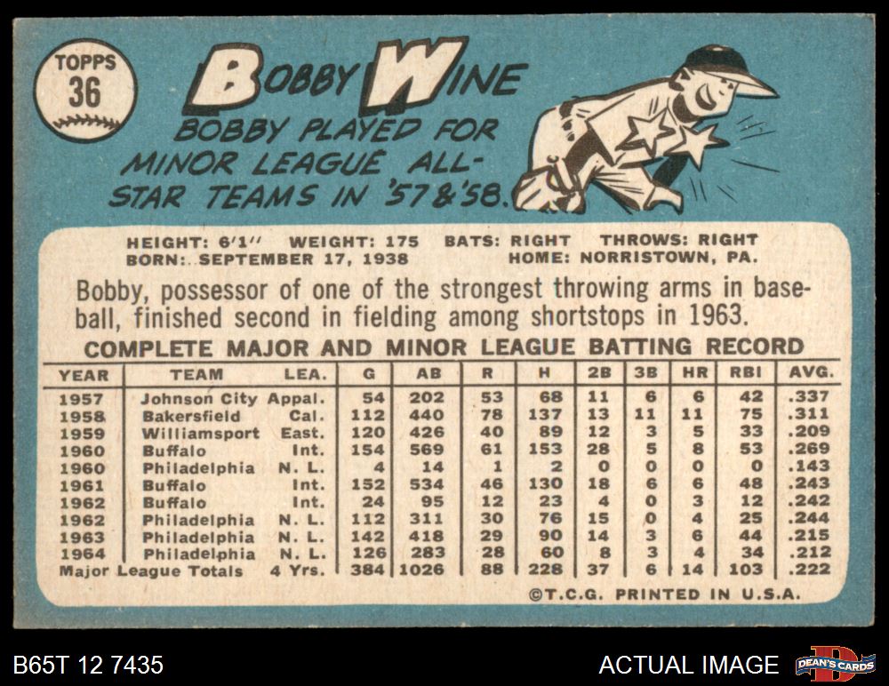 1965 Topps #36 Bobby Wine 3 - VG