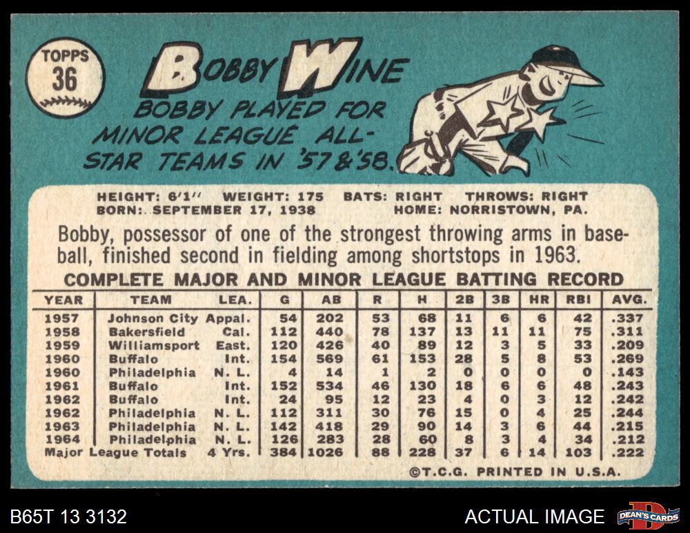 1965 Topps #36 Bobby Wine 6 - EX/MT