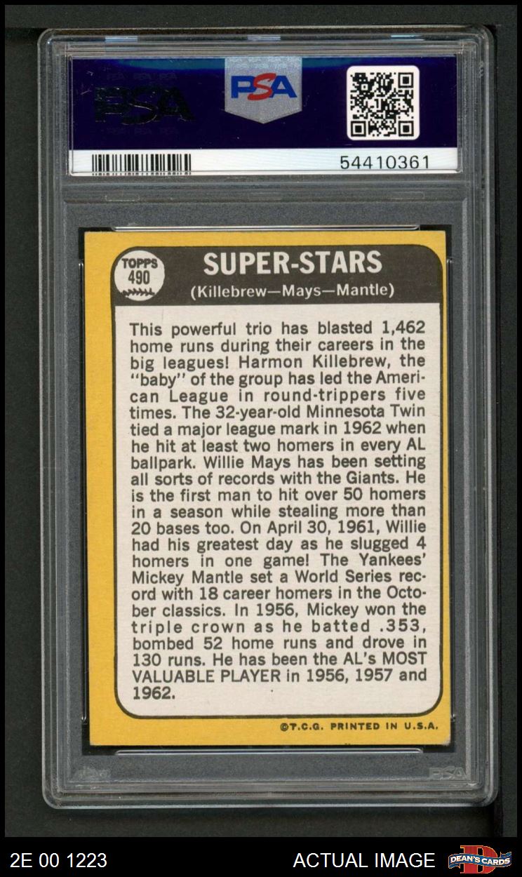 1968 Topps #490 - Mickey Mantle / Willie Mays / Harmon Killebrew Super Stars PSA 5 - EX