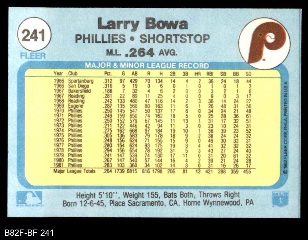 1982 Fleer #241 Larry Bowa 8 - NM/MT