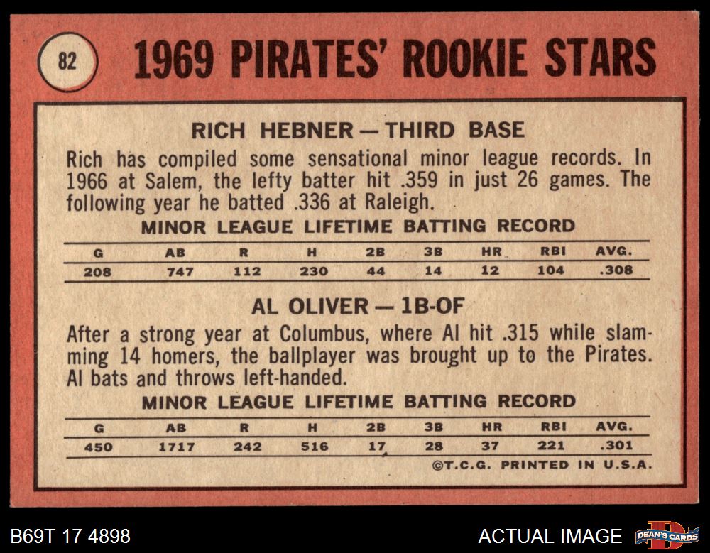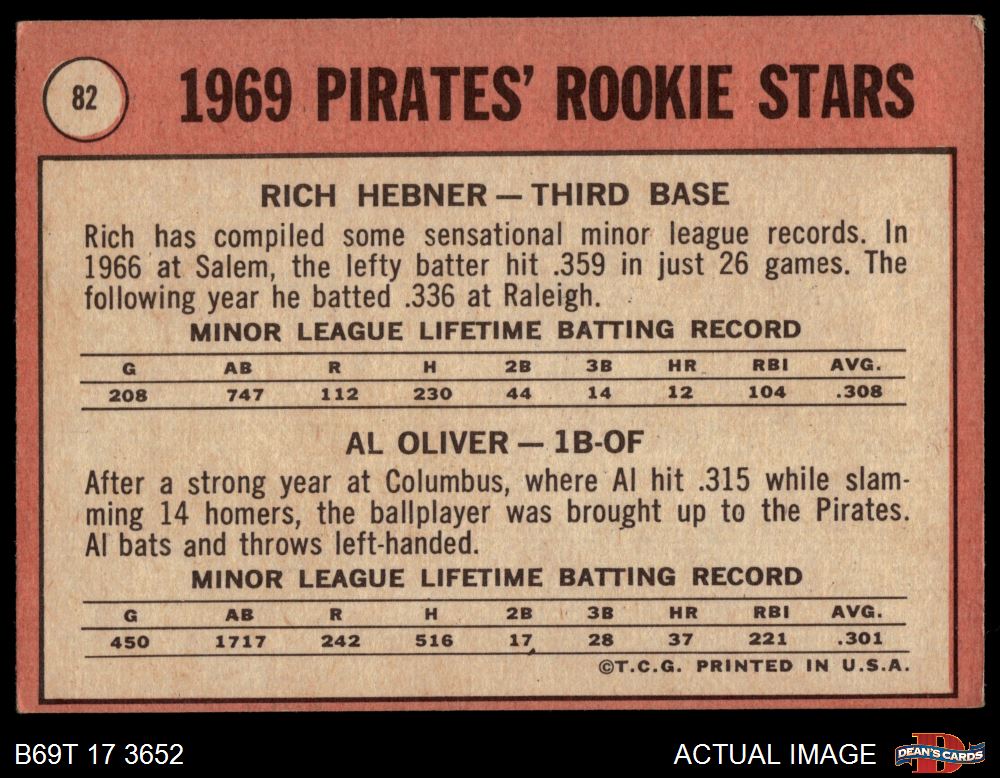 1969 Topps #82 - Al Oliver / Rich Hebner Pirates Rookies 3 - VG