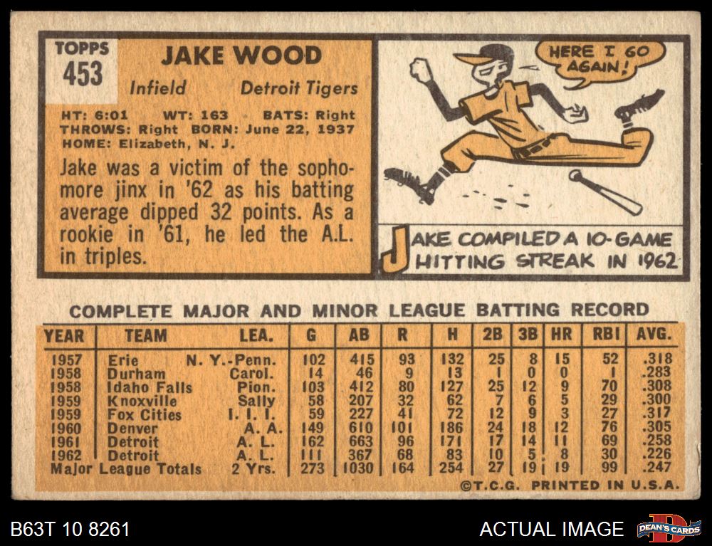1963 Topps #453 Jake Wood