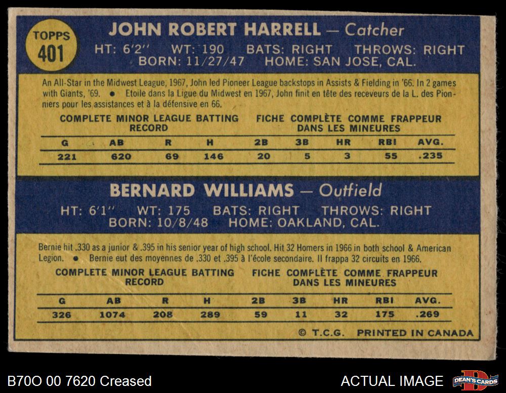 1970 O-Pee-Chee #401 - John Harrell / Bernie Williams Giants Rookies 3 - VG