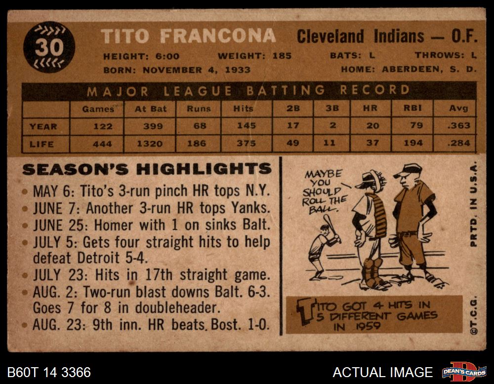 1960 Topps Baseball Cards (10,473 available)1960 Topps Indians (633 available)