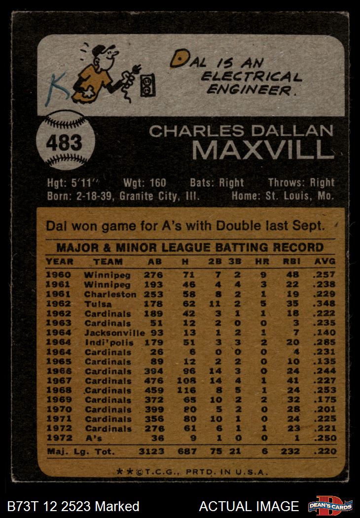 1973 Topps #483 Dal Maxvill